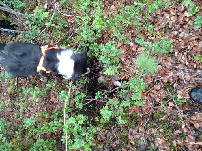Når introduksjonen var ferdig gikk vi gjennom en løype hvor hundene fikk funn etter funn med korte mellomrom. Dette var på forskjellige steder hvor kadaver var lagt ut på måter man kan forvente å finne det ute i virkelige oppdrag.